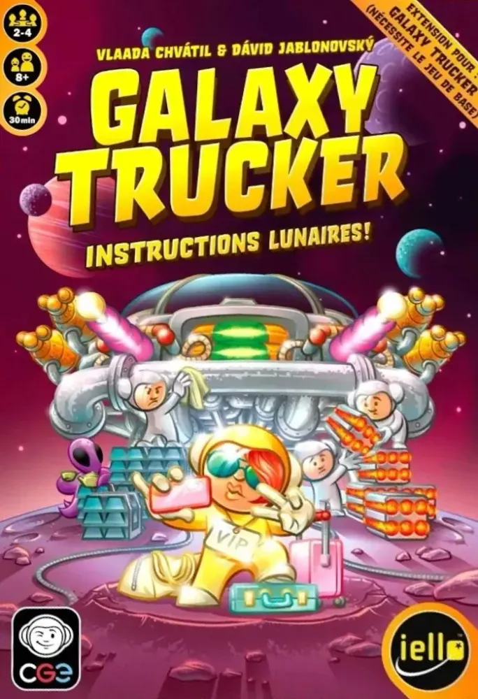 c'est par ici !L'extension Instructions Lunaires pour Galaxy Trucker comprend deux grands modules pour les camionneurs chevronnés : Missions et VIP Astronautes, ainsi qu’un mode au tour par tour pour une expérience plus détendue.